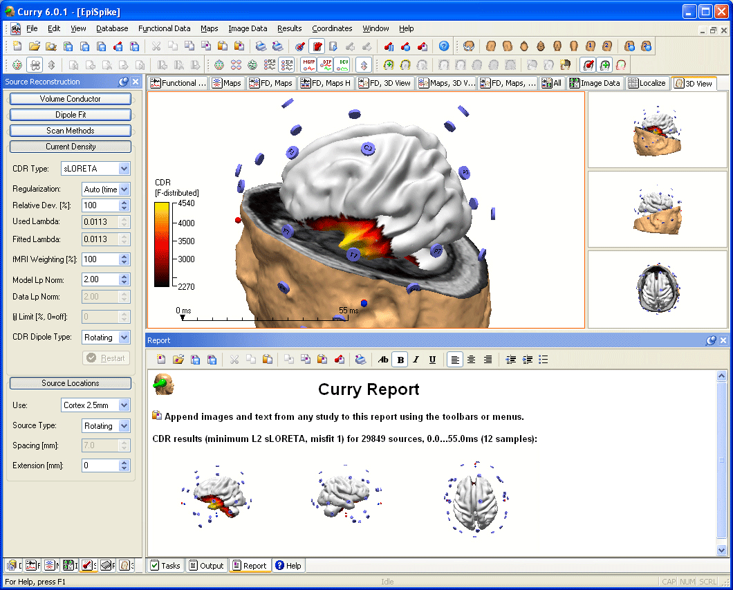 Interactive real-time rendering of the whole 3D-scenario (skin, cortex, sensor geometry, and reconstruction results) on state-of -the-art graphics cards.