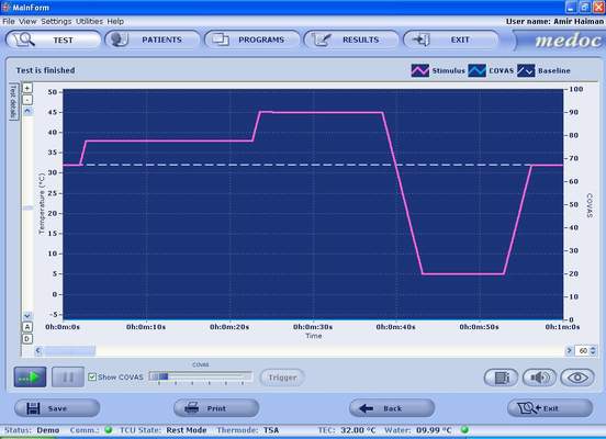 In this application the PATHWAY model CHEPS and ATS are not used as a diagnostic tools, but rather sophisticated pain stimulators integrated in the fMRI system and synchronized with its main computer. Medoc’s stimulators are currently being used by pain and neurological researchers at the Harvard University Medical School, the University of Toronto, pain research institutes in England, the University of Munich, the University of Birmingham in Alabama, the Veterans General Hospital, and National Yang-
