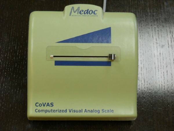 CoVAS is a hardware accessory for use with the PATHWAY Models ATS systems. CoVAS offers computerized, real-time, continuous VAS evaluation – adding an important dimension to pain threshold measurements. It can be used for continuous monitoring of response during therapeutic and experimental sessions, as well as measuring outcomes in pharmacological drug trials. A patient-controlled potentiometer, or slider, is utilized and the thermal stimulation and patient response curves are synchronized and available for export to a variety of spreadsheet programs for analysis. CoVAS is also available in a special non-magnetic version for use in an fMRI environment. The hardware is modified to work inside the MRI exam room, connected via a long cable to the stimulator, located outside of the MRI room.