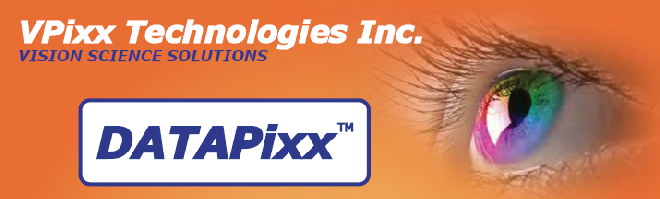 The DATAPixx is a complete multi-function data and video processing USB peripheral for vision research. In addition to a dual-display video processor, the DATAPixx includes an array of peripherals which often need to be synchronized to video during an experiment, including a stereo audio stimulator, a button box port for precise reaction-time measurement, triggers for electrophysiology equipment, and even a complete analog I/O subsystem. Because we implemented the video controller and peripheral control on the same circuit board, you can now successfully synchronize all of your subject I/O to video refresh with microsecond precision.