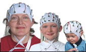 Modular EEG Recording Caps. Developed by Falk Minow Services with Ag/AgCl sintered ring shaped electrodes and caps of different sizes.